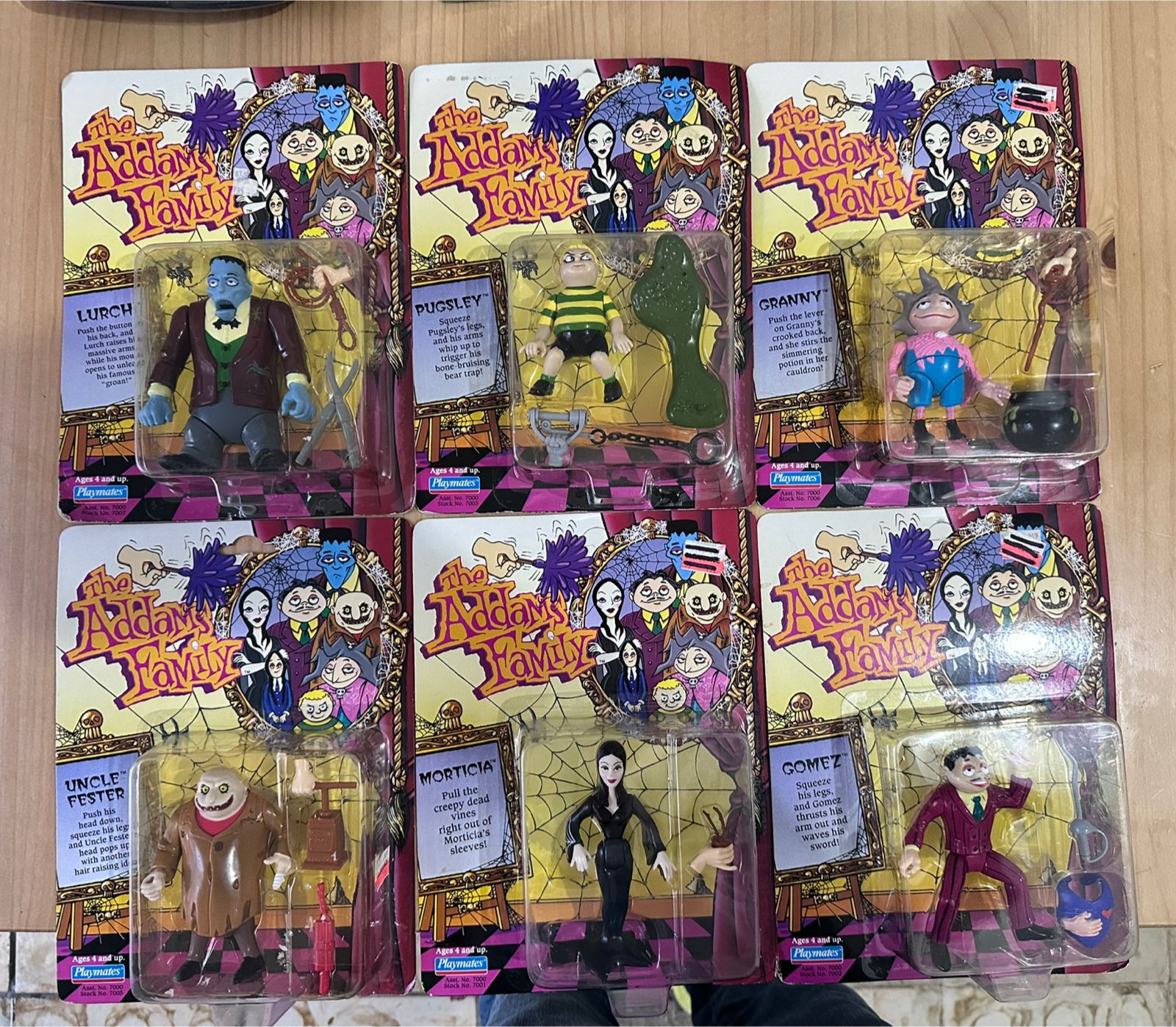 La línea de juguetes The Addams Family (1992) fue lanzada por Playmates Toys para acompañar la serie animada de ese año. Esta colección incluyó figuras de acción basadas en los personajes principales de la familia Addams, con un diseño que capturaba su peculiar estilo y humor oscuro.