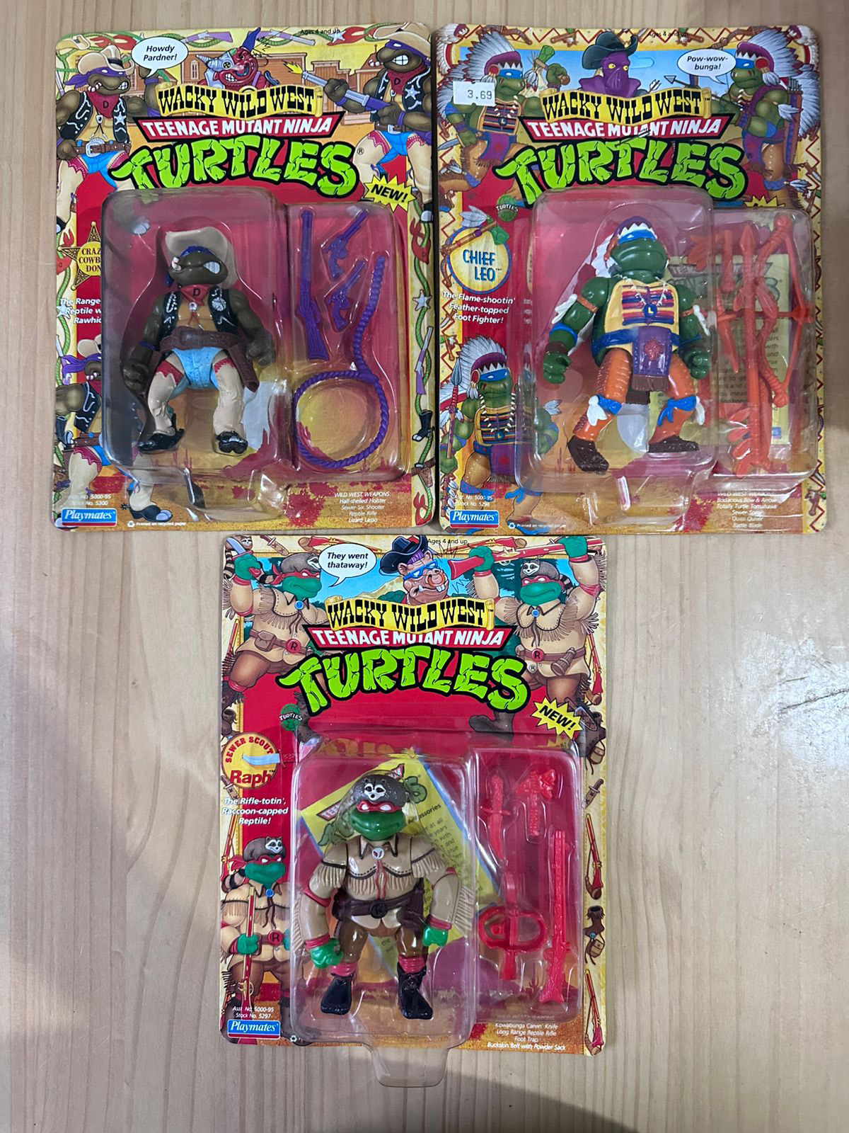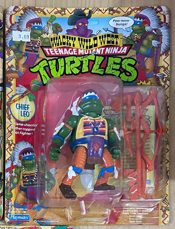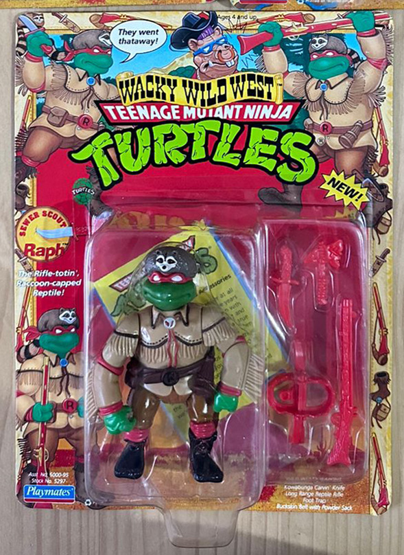 Wacky Wild West (1992): De Teenage Mutant Ninja Turtles. Una sublínea de figuras de las tortugas con temática del viejo oeste, transporta a las tortugas al Viejo Oeste con un toque cómico y aventurero. Cada figura combina atuendos de vaquero, sheriff o forajido con su estilo ninja característico. Incluían sombreros, pistolas, lazos y monturas mutantes, además de colores brillantes y detalles caricaturescos muy propios de los 90. Cada figura mide aproximadamente 5 pulgadas (12.7 cm) y presenta una temática del viejo oeste.