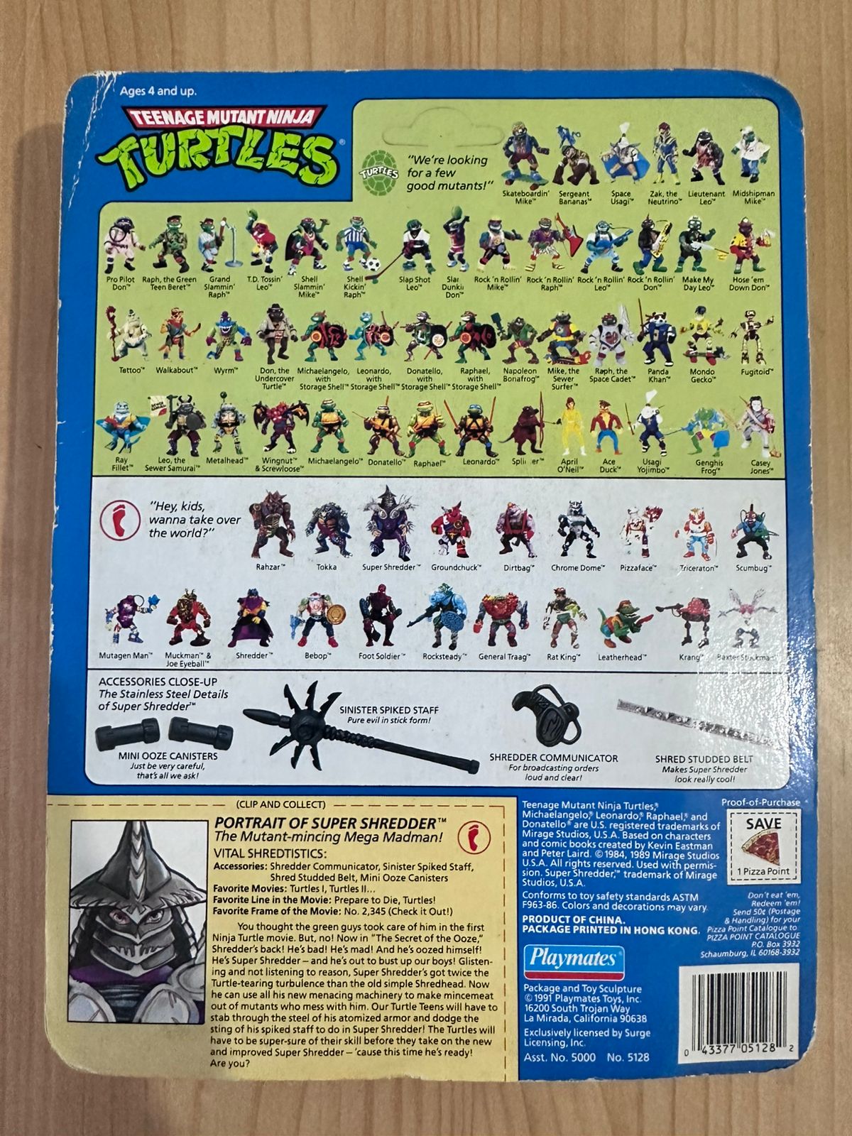 Super Shredder (1992): Una versión mejorada del villano Shredder. La figura mide aproximadamente 5 pulgadas (12.7 cm) y presenta una armadura metálica. Incluye una espada y una mochila.