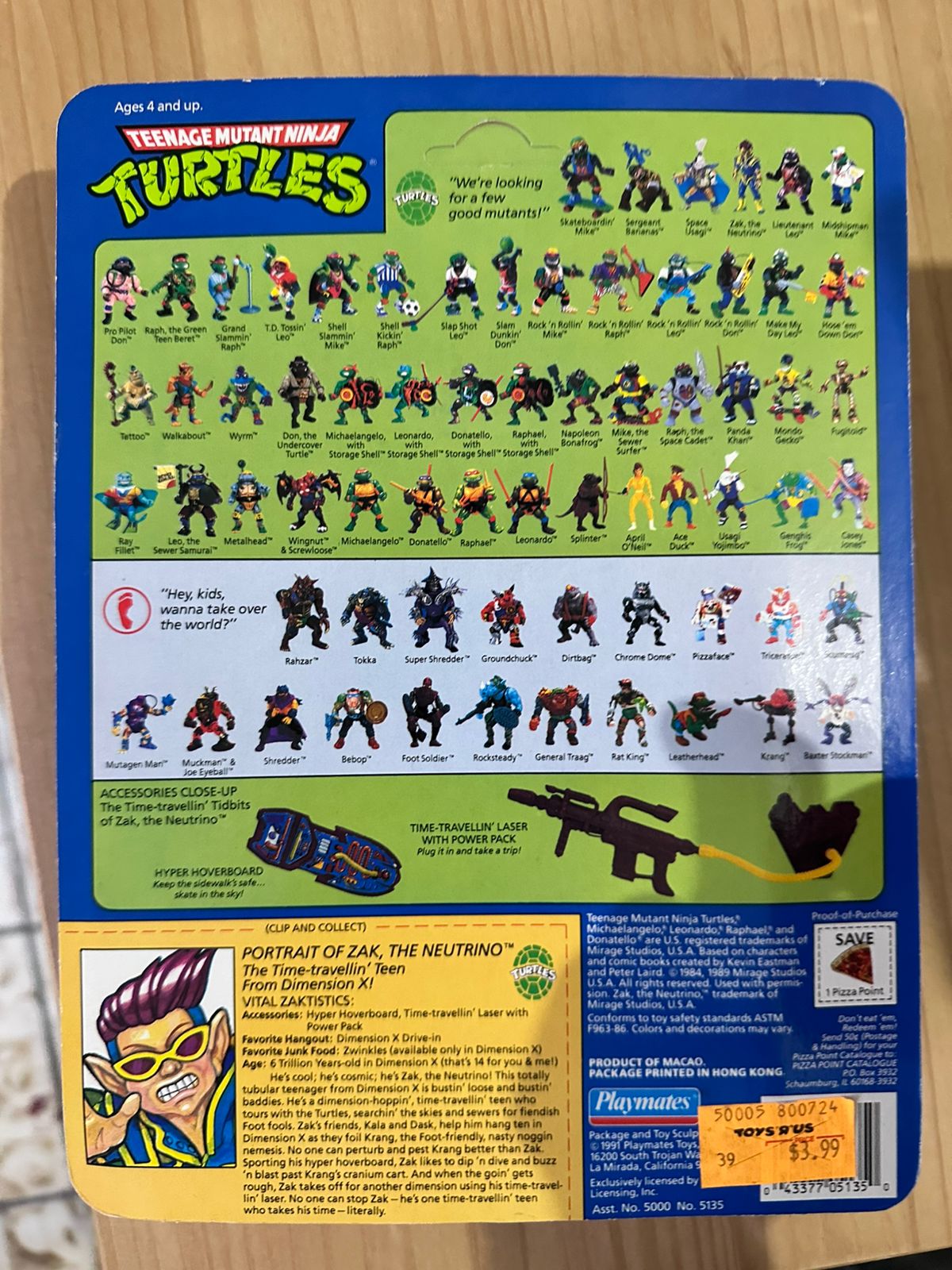 Zak the Neutrino (1992): Un joven extraterrestre con habilidades de combate. La figura mide aproximadamente 5 pulgadas (12.7 cm) y presenta una armadura espacial. Incluye una pistola y una mochila.